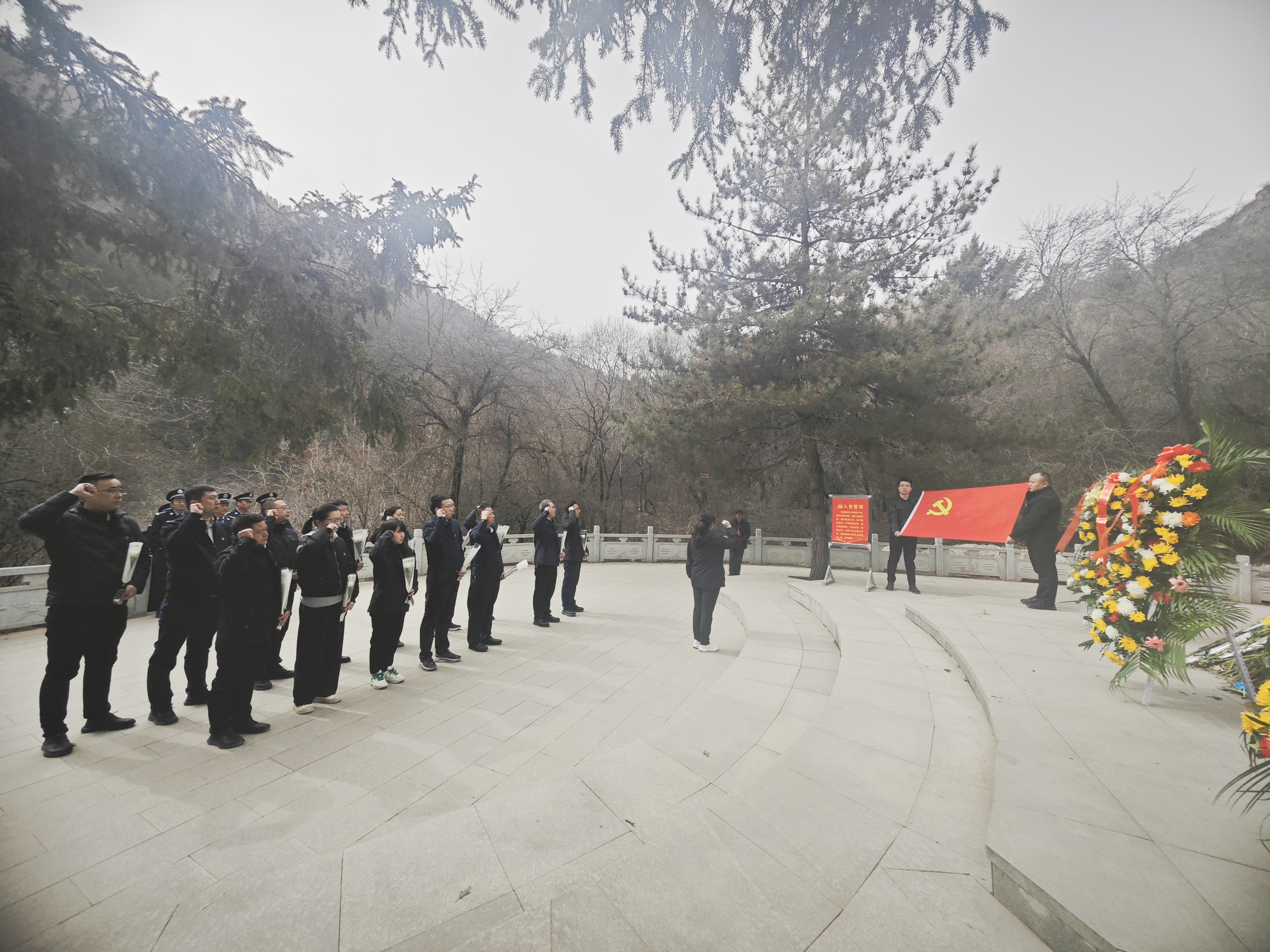 上午10時,全體黨員來到了莊嚴肅穆的興隆山烈士陵園。在革命烈士紀念碑前,隨著激昂的《義勇軍進行曲》響起,全體黨員整齊列隊,齊聲高唱國歌,表達著對祖國的無限熱愛和對先烈的崇高敬意。