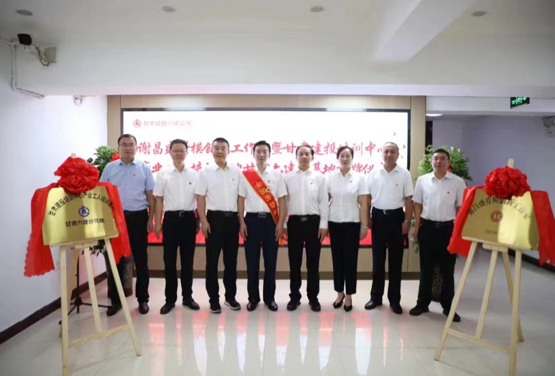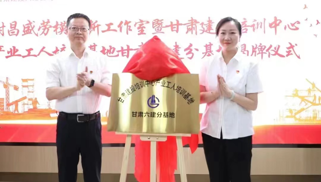 甘肅建投培訓(xùn)中心有限公司總經(jīng)理衛(wèi)偉和甘肅第六建設(shè)集團(tuán)股份有限公司副總經(jīng)理、總工師趙小明共同為甘肅建投培訓(xùn)中心產(chǎn)業(yè)工人培訓(xùn)基地甘六建分基地揭牌。甘肅六建公司副總經(jīng)理劉亞雄宣讀基地成立文件。